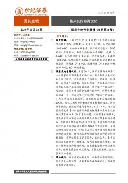 [生物医药]2025-09-22-世纪证券-医药生物行业周报(9月第3周):集采反内卷再优化-8页(银创产业通www.chanyetong.net)