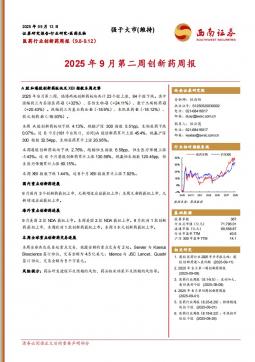[生物医药]2025-09-15-西南证券-2025年9月第二周创新药周报-14页(银创产业通www.chanyetong.net)
