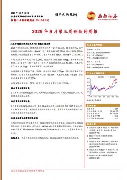 [生物医药]2025-09-22-西南证券-2025年9月第三周创新药周报-14页(银创产业通www.chanyetong.net)