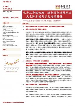 [电力电网]2025-11-09-华源证券-大能源行业2025年第45周周报:电力三季报回顾:绿电核电延续承压火电降本增利水电延续稳健-14页(银创产业通www.chanyetong.net)