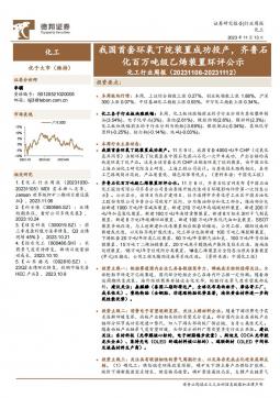 [化工]2023-11-13-德邦证券-化工行业周报:我国首套环氧丁烷装置成功投产,齐鲁石化百万吨级乙烯装置环评公示-24页(银创产业通www.chanyetong.net)