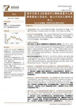 [化工]2023-12-25-德邦证券-化工行业周报:扬子巴斯夫2.8期项目乙醇胺装置及乙烯胺装置投入试运行,独山子石化乙烯项目开工-25页(银创产业通www.chanyetong.net)