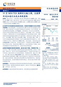 [化工]2022-09-30-安信证券-基础化工:10月MDI-TDI挂牌价大幅上调,北溪事件或加速行业成本曲线重构-3页(银创产业通www.chanyetong.net)
