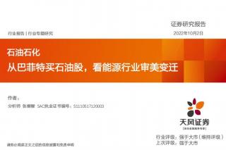 [化工]2022-10-07-天风证券-石油石化行业专题研究:从巴菲特买石油股,看能源行业审美变迁-32页(银创产业通www.chanyetong.net)