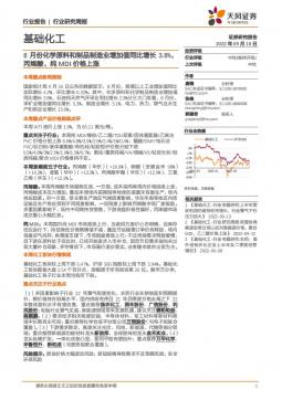 [化工]2022-09-19-天风证券-基础化工行业研究周报:8月份化学原料和制品制造业增加值同比增长3.8%,丙烯酸、纯MDI价格上涨-21页