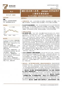 [化工]2023-11-07-德邦证券-化工行业周报:MDI需求渐入淡季,Jansen世界级钾矿二期项目建设获批-24页(银创产业通www.chanyetong.net)