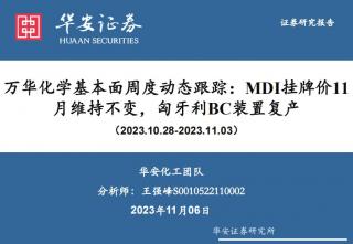 [化工]2023-11-06-华安证券-万华化学基本面周度动态跟踪:MDI挂牌价11月维持不变,匈牙利BC装置复产-32页(银创产业通www.chanyetong.net)