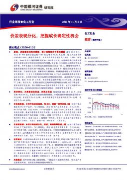 [化工]2023-11-06-中国银河-化工行业周报:价差表现分化,把握成长确定性机会-18页(银创产业通www.chanyetong.net)