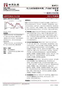 [化工]2022-11-07-中原证券-基础化工行业月报:化工品价格整体回调,产业链下游有望受益-15页(银创产业通www.chanyetong.net)