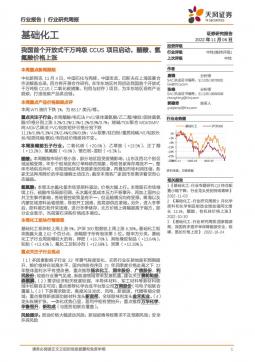 [化工]2022-11-07-天风证券-基础化工行业研究周报:我国首个开放式千万吨级CCUS项目启动,醋酸、氢氟酸价格上涨-20页(银创产业通www.chanyetong.net)