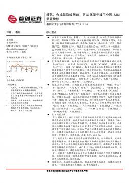 [化工]2023-11-15-首创证券-基础化工行业简评报告:液氯、合成氨涨幅居前,万华化学宁波工业园MDI装置检修-17页(银创产业通www.chanyetong.net)