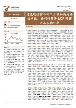 [化工]2024-01-02-德邦证券-化工新材料行业周报:通威股份拟加码工业硅和高纯晶硅产能,普利特签署LCP薄膜产品采购订单-11页(银创产业通www.chanyetong.net)