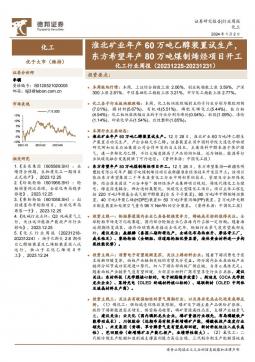 [化工]2024-01-02-德邦证券-化工行业周报:淮北矿业年产60万吨乙醇装置试生产,东方希望年产80万吨煤制烯烃项目开工-25页(银创产业通www.chanyetong.net)