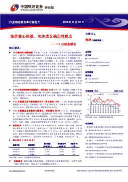 [化工]2024-01-01-中国银河-石油化工行业12月动态报告:油价重心回落,关注成长确定性机会-23页(银创产业通www.chanyetong.net)