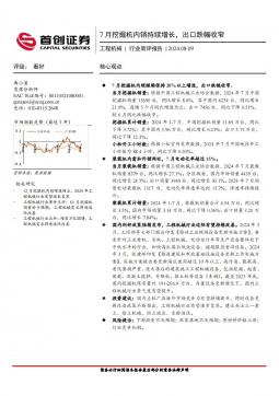 [工程机械]2024-08-09-首创证券-工程机械行业简评报告:7月挖掘机内销持续增长,出口跌幅收窄-3页(银创产业通www.chanyetong.net)(银创产业通www.chanyetong.net)