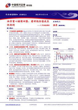 [化工]2022-10-10-中国银河-石油化工9月动态报告:油价重心继续回落,看好低估值成长性标的-25页(银创产业通www.chanyetong.net)