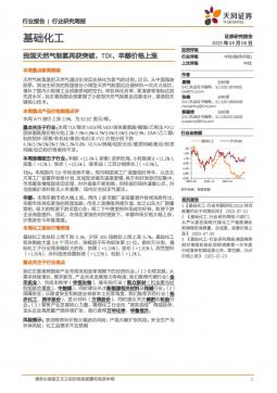 [化工]2023-08-07-天风证券-基础化工行业研究周报:我国天然气制氢再获突破,TDI、辛醇价格上涨-19页(银创产业通www.chanyetong.net)
