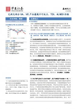 [化工]2024-08-12-华安证券-基础化工行业周报:巴斯夫部分VA、VE产品遭遇不可抗力,TDI、纯MDI价格-27页(银创产业通www.chanyetong.net)