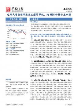 [化工]2024-08-04-华安证券-基础化工行业周报:巴斯夫路德维希港发生爆炸事故,纯MDI价格价差双增-31页(银创产业通www.chanyetong.net)