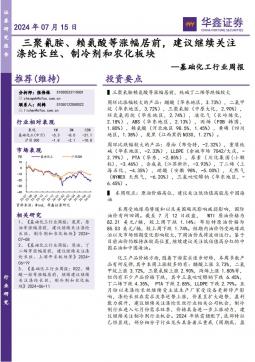 [化工]2024-07-16-华鑫证券-基础化工行业周报:三聚氰胺、赖氨酸等涨幅居前,建议继续关注涤纶长丝、制冷剂和农化板块-30页(银创产业通www.chanyetong.net)