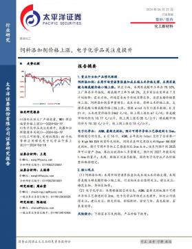 [化工]2024-06-25-太平洋-化工新材料行业周报:饲料添加剂价格上涨,电子化学品关注度提升-27页(银创产业通www.chanyetong.net)