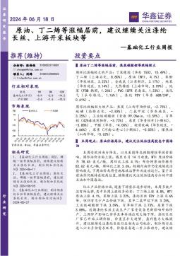 [化工]2024-06-19-华鑫证券-基础化工行业周报:原油、丁二烯等涨幅居前,建议继续关注涤纶长丝、上游开采板块等-30页(银创产业通www.chanyetong.net)