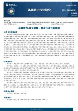 [化工]2024-06-17-国金证券-基础化工行业研究:苹果发布AI全家桶,重点行业节能降碳-23页(银创产业通www.chanyetong.net)
