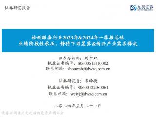 [化工]2024-05-22-东吴证券-检测服务行业2023年&2024年一季报总结:业绩阶段性承压,静待下游复苏&新兴产业需求释放-29页(银创产业通www.chanyetong.net)
