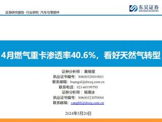 [化工]2024-05-21-东吴证券-汽车与零部件:4月燃气重卡渗透率40.6%,看好天然气转型-23页