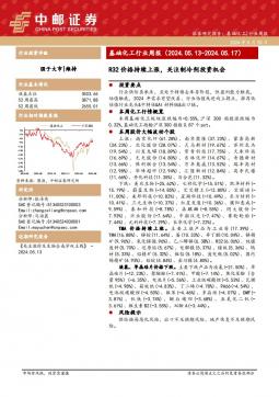 [化工]2024-05-20-中邮证券-基础化工行业周报:R32价格持续上涨,关注制冷剂投资机会-15页(银创产业通www.chanyetong.net)