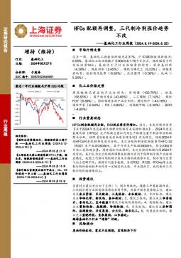 [化工]2024-08-28-上海证券-基础化工行业周报:HFCs配额再调整,三代制冷剂涨价趋势不改-13页(银创产业通www.chanyetong.net)