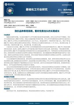 [化工]2024-09-01-国金证券-基础化工行业研究:涨价品种表现亮眼,看好优质龙头的长期成长-47页(银创产业通www.chanyetong.net)
