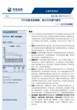 [化工]2024-03-14-华龙证券-化工行业周报:下行风险有效缓解、细分方向景气提升-26页(银创产业通www.chanyetong.net)