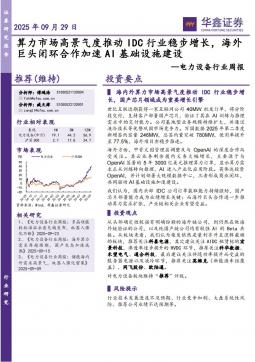 [电力电网]2025-09-30-华鑫证券-电力设备行业周报:算力市场高景气度推动IDC行业稳步增长,海外巨头闭环合作加速AI基础设施建设-18页(银创产业通www.chanyetong.net)
