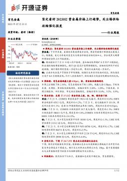 [金属]2023-07-24-开源证券-有色金属行业周报:坚定看好2023H2贵金属价格上行趋势,关注锡供给收缩催化强度-13页(银创产业通www.chanyetong.net)