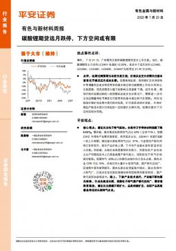 [金属]2023-07-24-平安证券-有色与新材料周报:碳酸锂期货远月跌停,下方空间或有限-16页(银创产业通www.chanyetong.net)