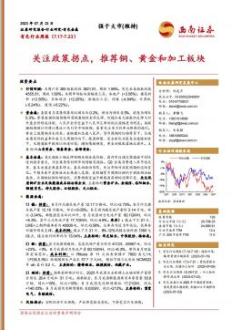 [金属]2023-07-24-西南证券-有色行业周报:关注政策拐点,推荐铜、黄金和加工板块-23页(银创产业通www.chanyetong.net)