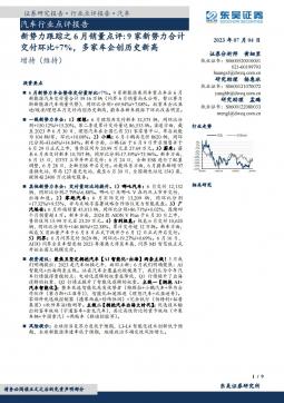 [汽车整车]2023-07-04-东吴证券-汽车行业点评报告:新势力跟踪之6月销量点评:9家新势力合计交付环比+7%,多家车企创历史新高-9页(银创产业通www.chanyetong.net)