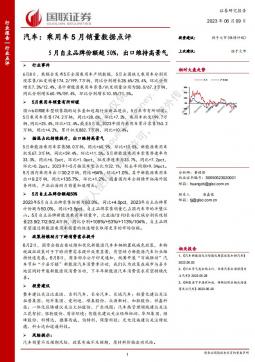 [汽车整车]2023-06-11-国联证券-汽车:乘用车5月销量数据点评:5月自主品牌份额超50%,出口维持高景气-7页(银创产业通www.chanyetong.net)