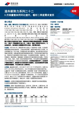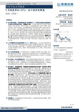 [汽车整车]2023-06-09-东吴证券-汽车行业点评报告:5月批发环比+12%,出口创历史新高-5页(银创产业通www.chanyetong.net)