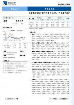 [电池]2023-04-14-财信证券-新能源电池:3月动力电池产量环比增长23.5%,产业逐步复苏-4页(银创产业通www.chanyetong.net)