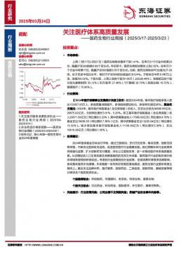 [医药]2025-03-25-东海证券-医药生物行业周报:关注医疗体系高质量发展-10页(银创产业通www.chanyetong.net)