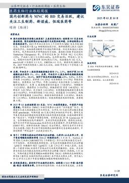 [医药]2025-03-31-东吴证券-医药生物行业跟踪周报:国内创新药与MNC的BD交易活跃,建议关注三生制药、新诺威、恒瑞医药等-25页(银创产业通www.chanyetong.net)