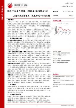 [汽车整车]2023-04-16-国联证券-汽车行业4月周报:上海车展期待值高,政策加码一体化压铸-22页(银创产业通www.chanyetong.net)(银创产业通www.chanyetong.net)