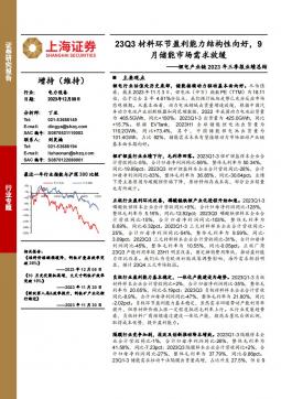 [锂电]2023-12-11-上海证券-锂电产业链2023年三季报业绩总结:23Q3材料环节盈利能力结构性向好,9月储能市场需求放缓-26页(银创产业通www.chanyetong.net)(银创产业通www.chanyetong.net)