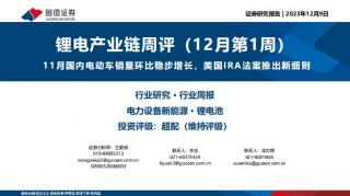 [锂电]2023-12-11-国信证券-锂电产业链周评(12月第1周):11月国内电动车销量环比稳步增长,美国IRA法案推出新细则-22页(银创产业通www.chanyetong.net)(银创产业通www.chanyetong.net)