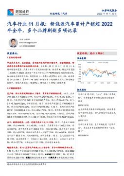 [新能源汽车]2023-11-16-联储证券-汽车行业11月报:新能源汽车累计产销超2022年全年,多个品牌刷新多项记录-22页(银创产业通www.chanyetong.net)(银创产业通www.chanyetong.net)