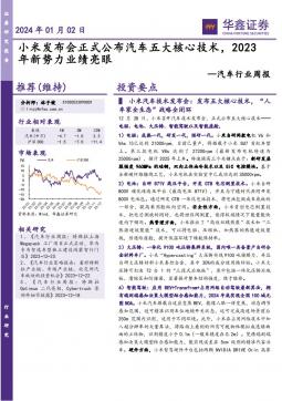 [汽车整车]2024-01-02-华鑫证券-汽车行业周报:小米发布会正式公布汽车五大核心技术,2023年新势力业绩亮眼-14页(银创产业通www.chanyetong.net)(银创产业通www.chanyetong.net)