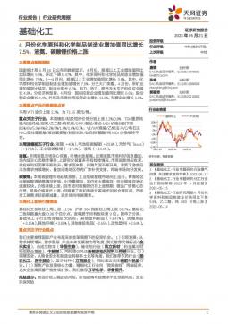 [化工]2023-05-22-天风证券-基础化工行业研究周报:4月份化学原料和化学制品制造业增加值同比增长7.5%,液氮、碳酸锂价格上涨-19页