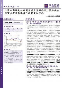[新能源汽车]2024-03-11-华鑫证券-汽车行业周报:江淮中高端电动乘用车项目发布公示,汽车央企将重点考核新能源汽车销量和技术-19页(银创产业通www.chanyetong.net)(银创产业通www.chanyetong.net)